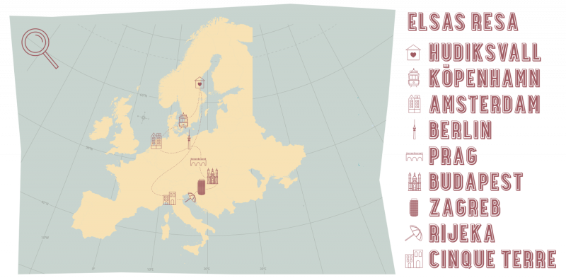 “Tågräls och metervis av utsträckta gulgröna ängar. Kilometer efter kilometer, stad efter stad, land efter land. Icke-existerande wifi, nackkuddar, kortlekar och utlästa bokblad. Att kliva på och kliva av. Att känna friheten.”