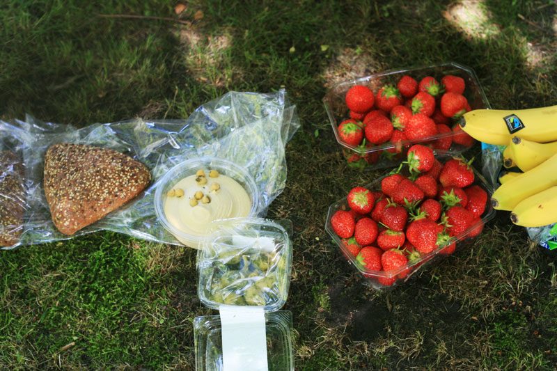 Som tågluffare lever man ofta sparsamt när det gäller mat (läs tomatsoppa och havregryn), så att ibland lyxa till det med Lidl-frukost = nybakat bröd, oliver, hummus, jordgubbar, frukt och yoghurt, det var himlen.