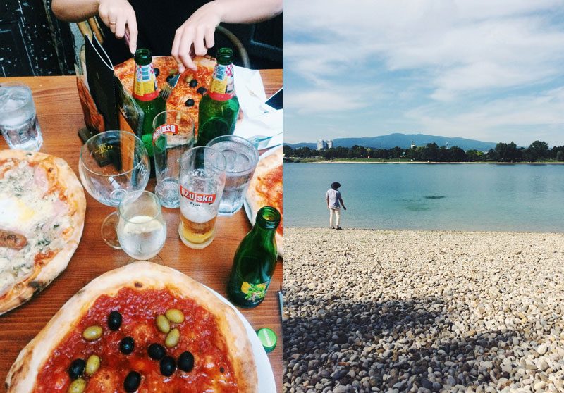Två nätter spenderades i Kroatiens huvudstad. Det ligger lite mitt i, så havet var ej så lättillgängligt. Det fanns dock en sjö i närheten. När vi kom dit såg vi att själva badplatsen var på andra sidan, så man måste gå runt rätt långt, det ville de ej och tog en genväg 😉